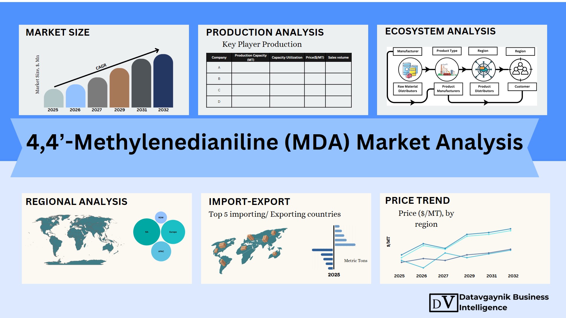 4,4’-Methylenedianiline (MDA) Market Size, Production, Sales, Average Product Price, Market Share, Import vs Export