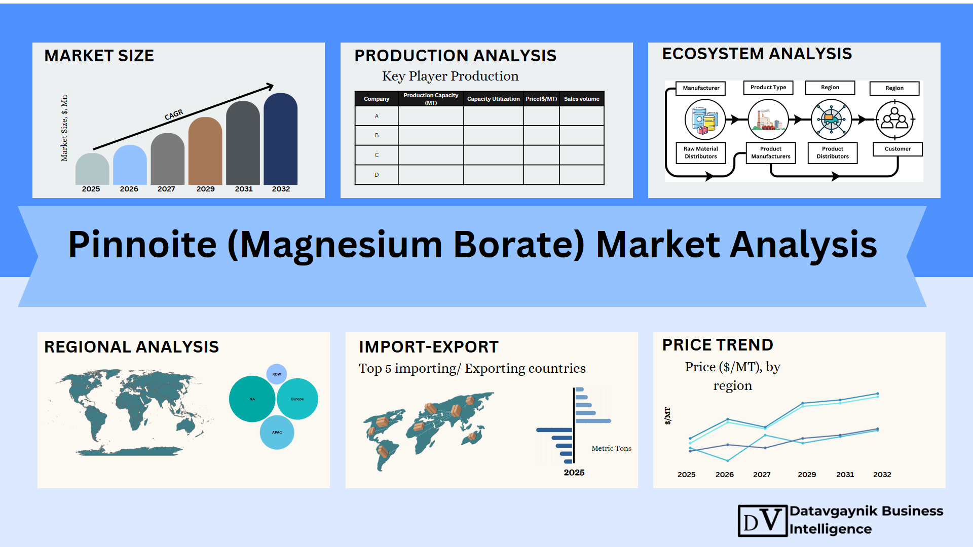 Global Pinnoite (Magnesium Borate) Market Size, Production, Sales, Average Product Price, Market Share, Import vs Export – United States, Europe, APAC, Latin America, Middle East & Africa