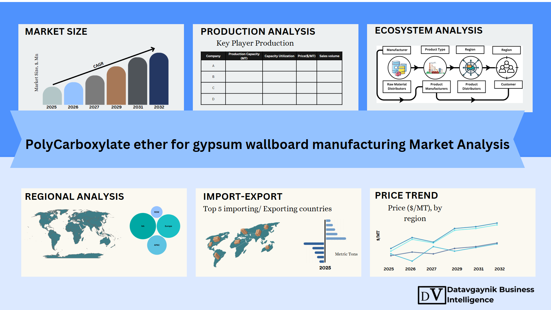 PolyCarboxylate ether for gypsum wallboard manufacturing Market Size, Production, Sales, Average Product Price, Market Share, Import vs Export